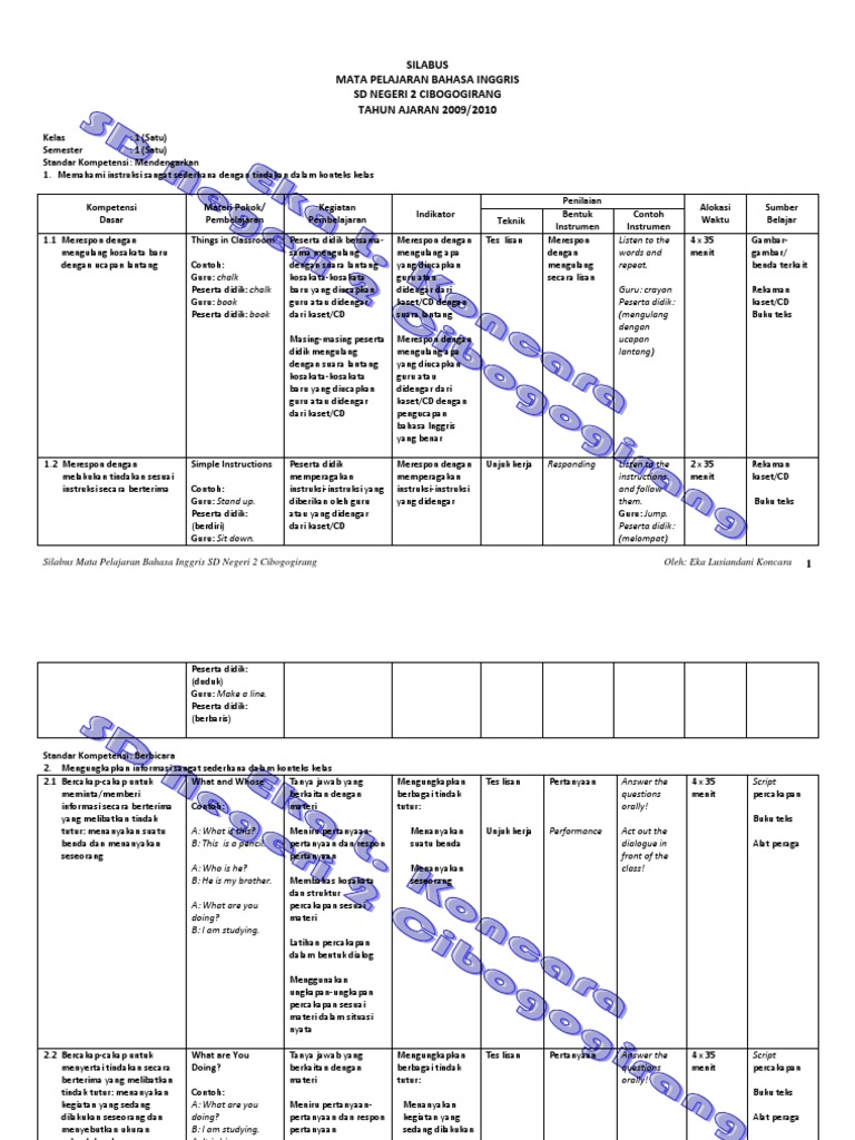 untuk "Silabus Bahasa Inggris Kelas 1 Sd : Silabus B Inggris Kelas 1 6 Sd : Silabus bahasa inggris kelas 1 sd."